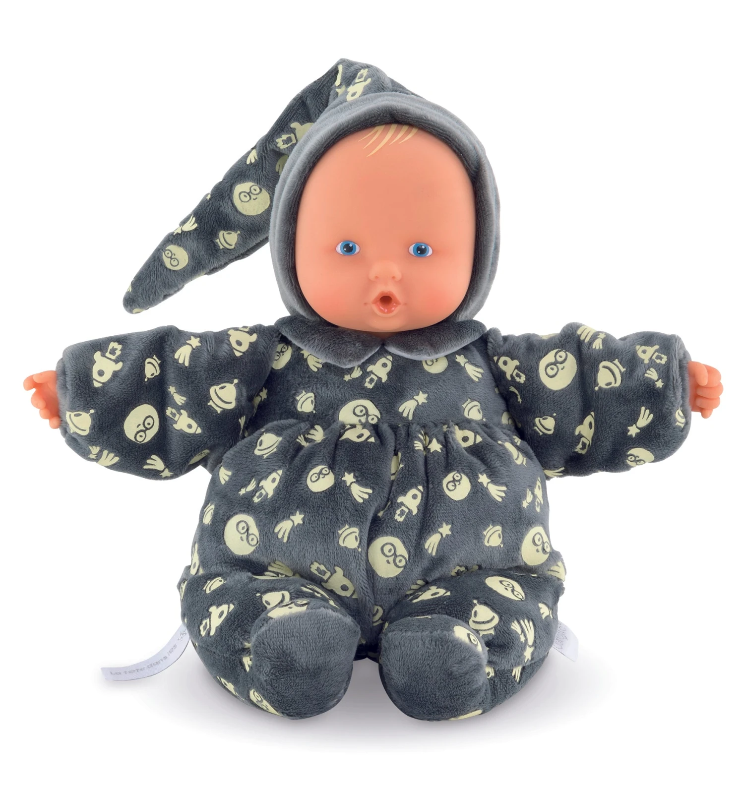 Babipouce Glow-in-the-Dark is super soft and cuddly and has a sweet, realistic vinyl face that charms and comforts baby and is delicately scented with vanilla — a Corolle signature. It’s also perfectly sized (11″” tall) and lightweight so it’s easy for tiny hands to hug and to hold. A plus for parents: Babipouce Glow-in-the-Dark has a sewn-in tag with space to write baby’s first name or a phone number in case it’s ever lost or misplaced. Babipouce Glow-in-the-Dark is surface washable.