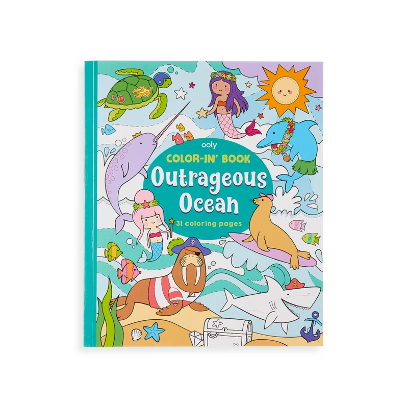 Make a splash of amazing color in the Outrageous Ocean Coloring Book for kids! Dive deep into the pages to discover a nautical world of narwhals, dolphins, mermaids and more and maybe if you’re lucky you’ll find some treasure along the way too!