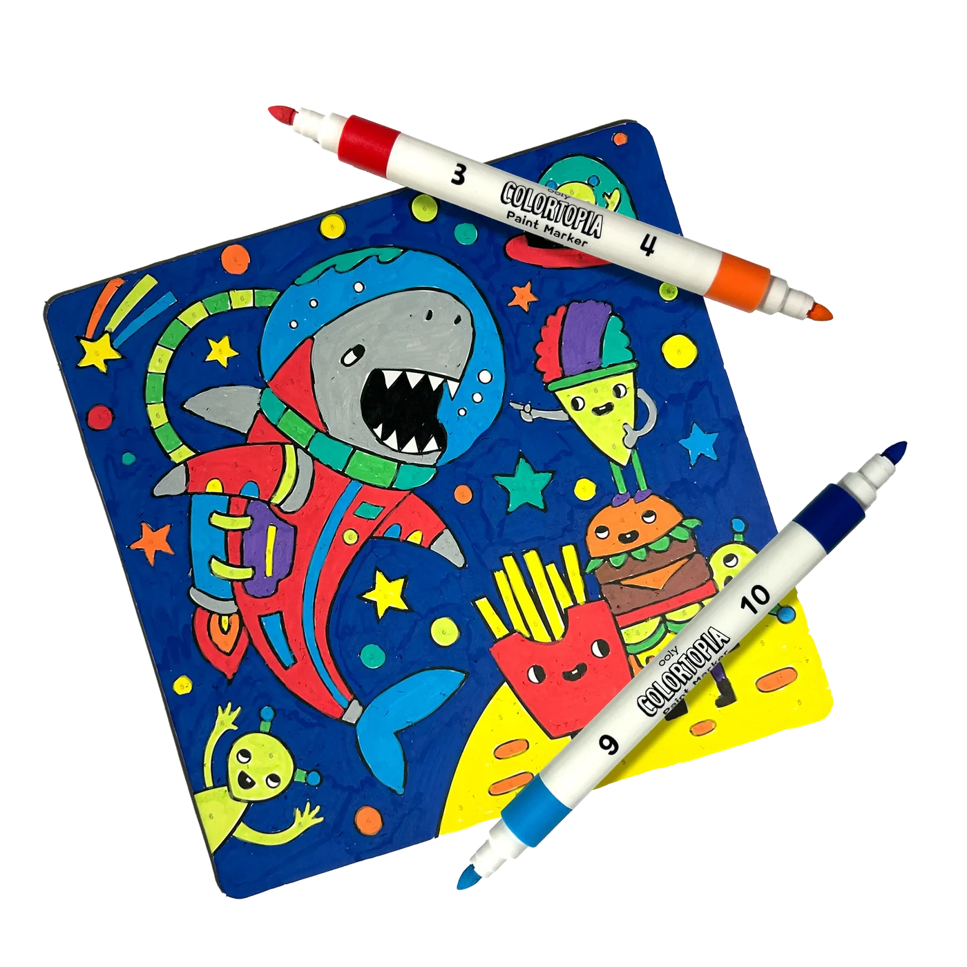 Beginner painters can create their masterpiece in no time with this sweet and smart color by numbers kit. Bring two epic adventures to colorful life by following the number guide and using the included premium paint markers. Watch how an astronaut shark and a French fry alien transform into vibrant characters as the water-based markers smoothly paint onto the board. And once you’re finished, you can display your work on one of the included sturdy stands. From start to finish, this color by numbers set takes care of everything you need to feel like a real artist! This is a wonderful gift for any kid who’s interested in expressing their creativity.