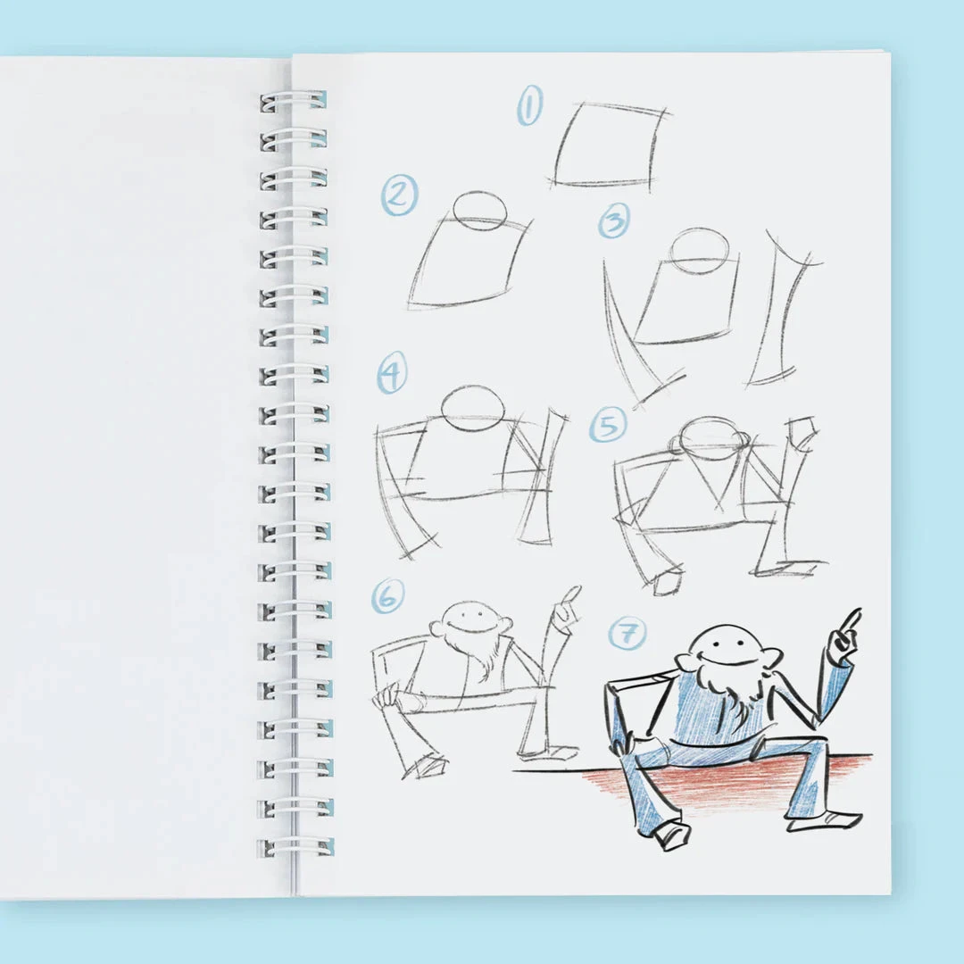 The detailed Drawing Guide will take your child through the steps of drawing people, including body shapes, poses and positions, how to create eye shapes, master the always tricky hands and so much more!