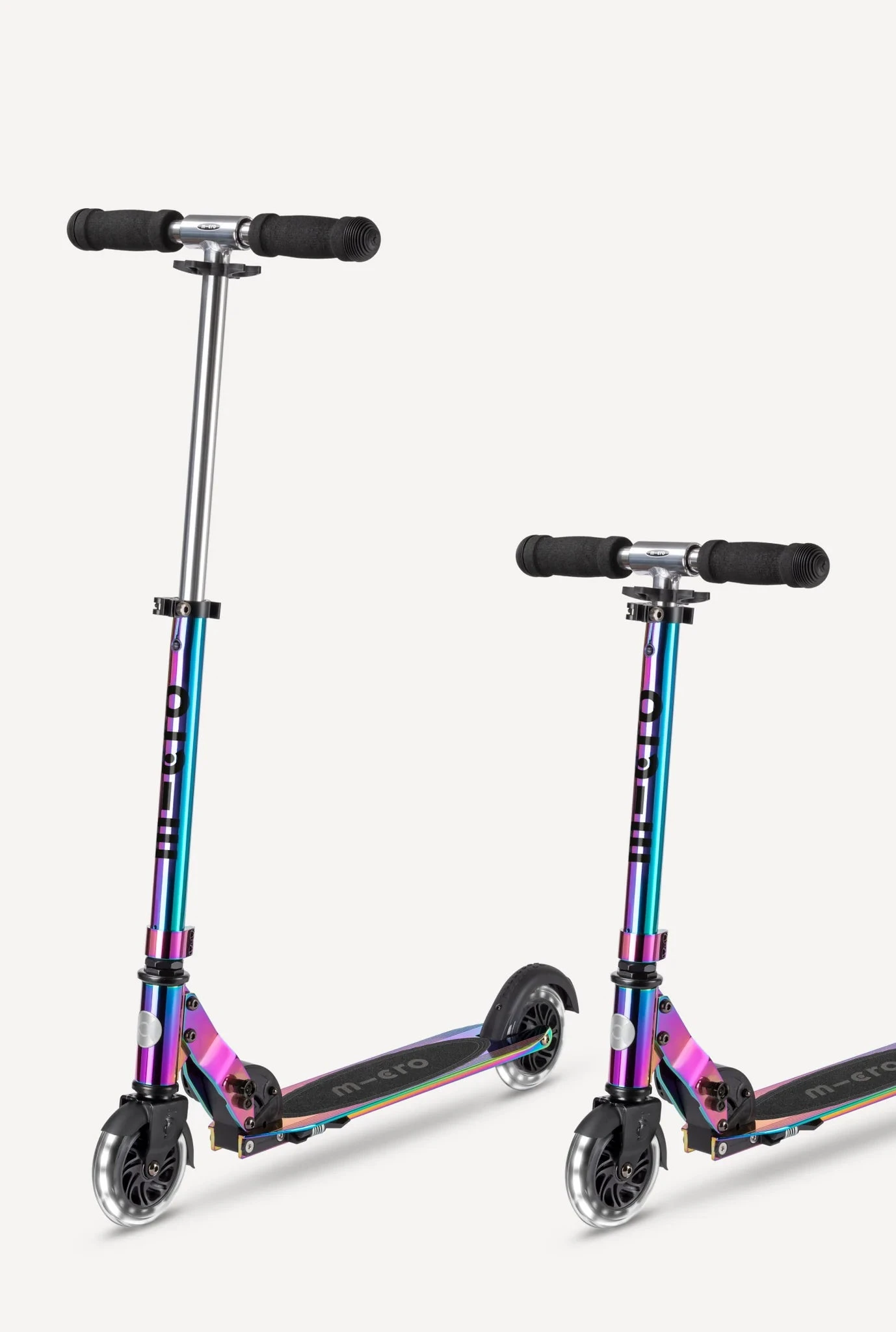 Micro’s highest-rated and most-awarded two-wheeled scooter equipped with motion-activated LED wheels.