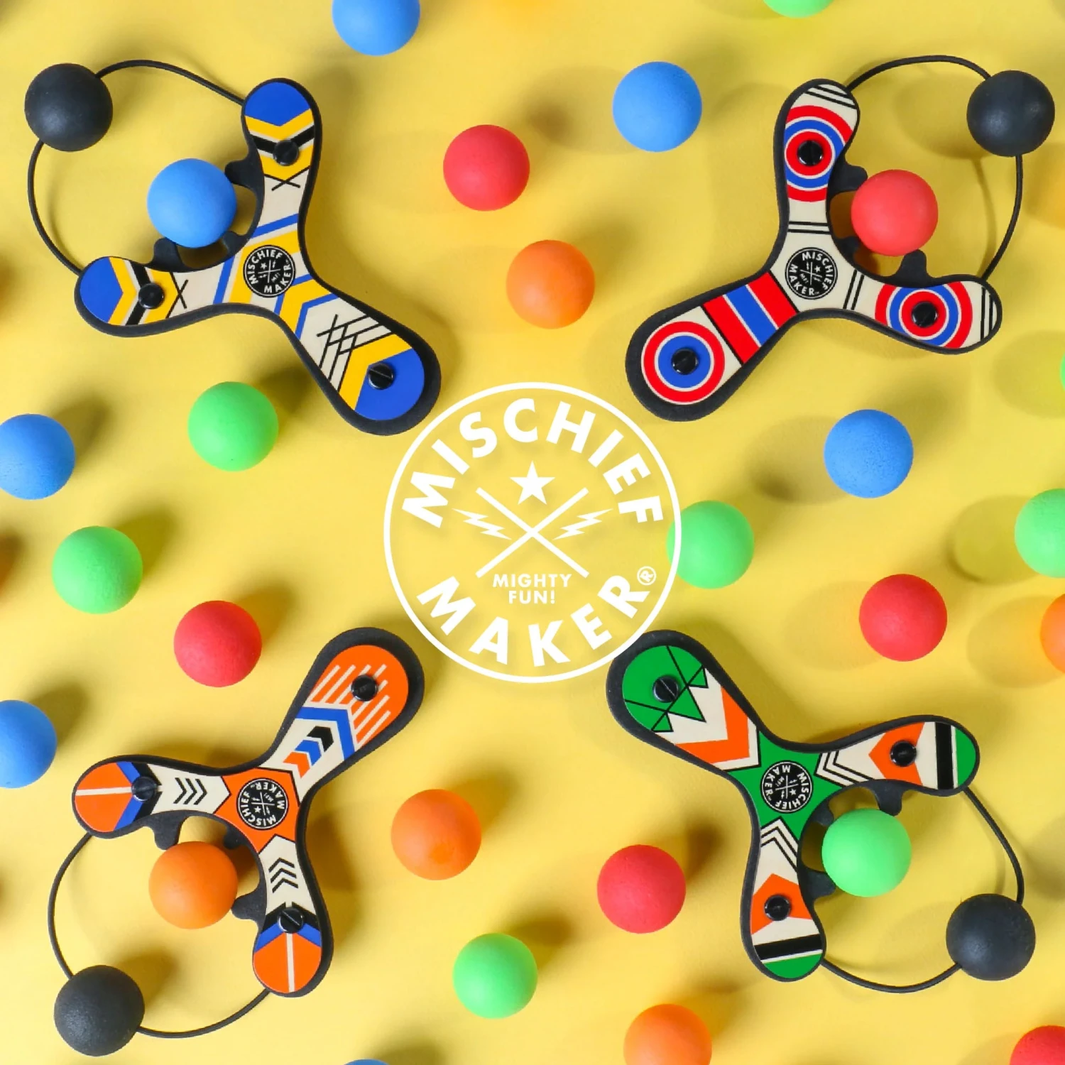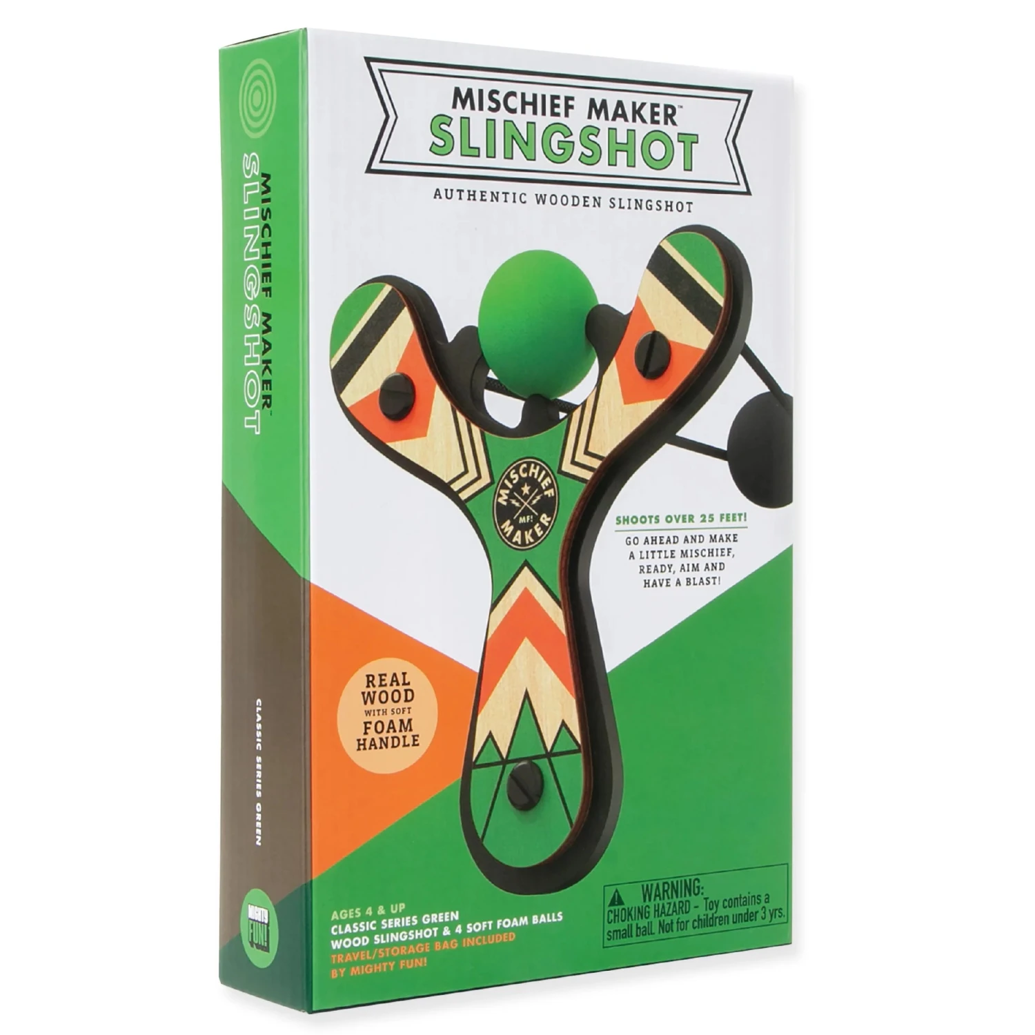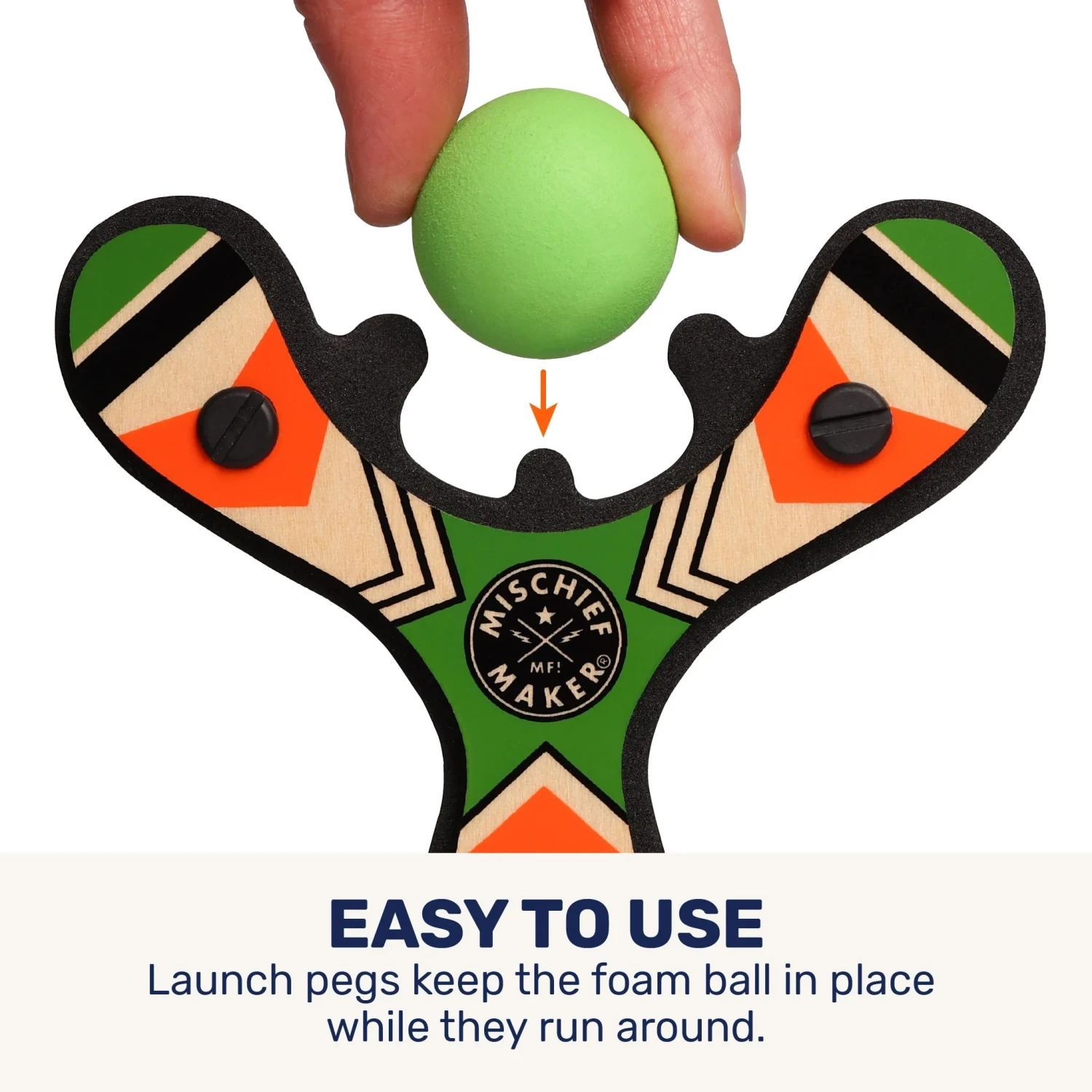 The Mischief Maker® Wooden Slingshot is the ultimate first slingshot for kids. Made from non-toxic wood and designed to shoot only soft foam balls, it’s a classic toy reimagined for modern mischief-makers.