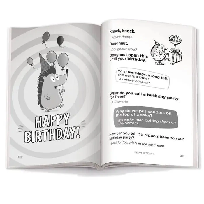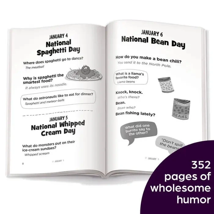 Winter, spring, summer or fall, this pun-believable book will bring laughs for all! Get ready for a year of knee-slapping, side-splitting, rib-tickling laughs with this 352-page joke book, perfect for young comedians ages 6 and up. Hundreds of jokes will keep kids smiling and reading for fun all year long.