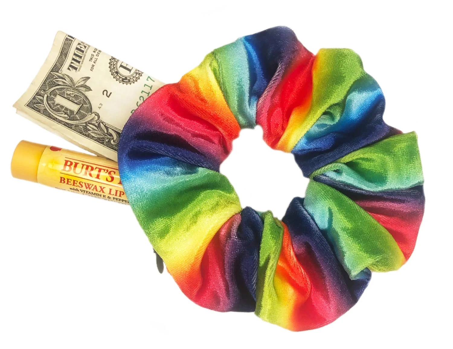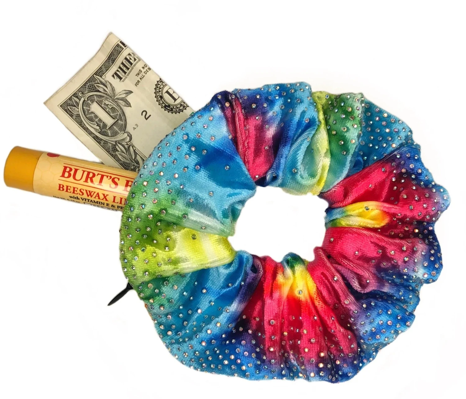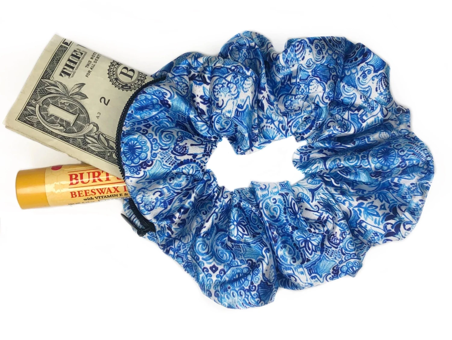 Introducing the Pocket Scrunchie! These have a zipper that lets you hide everything you need…chapstick, money, and more. Wear it in your hair or on your wrist!