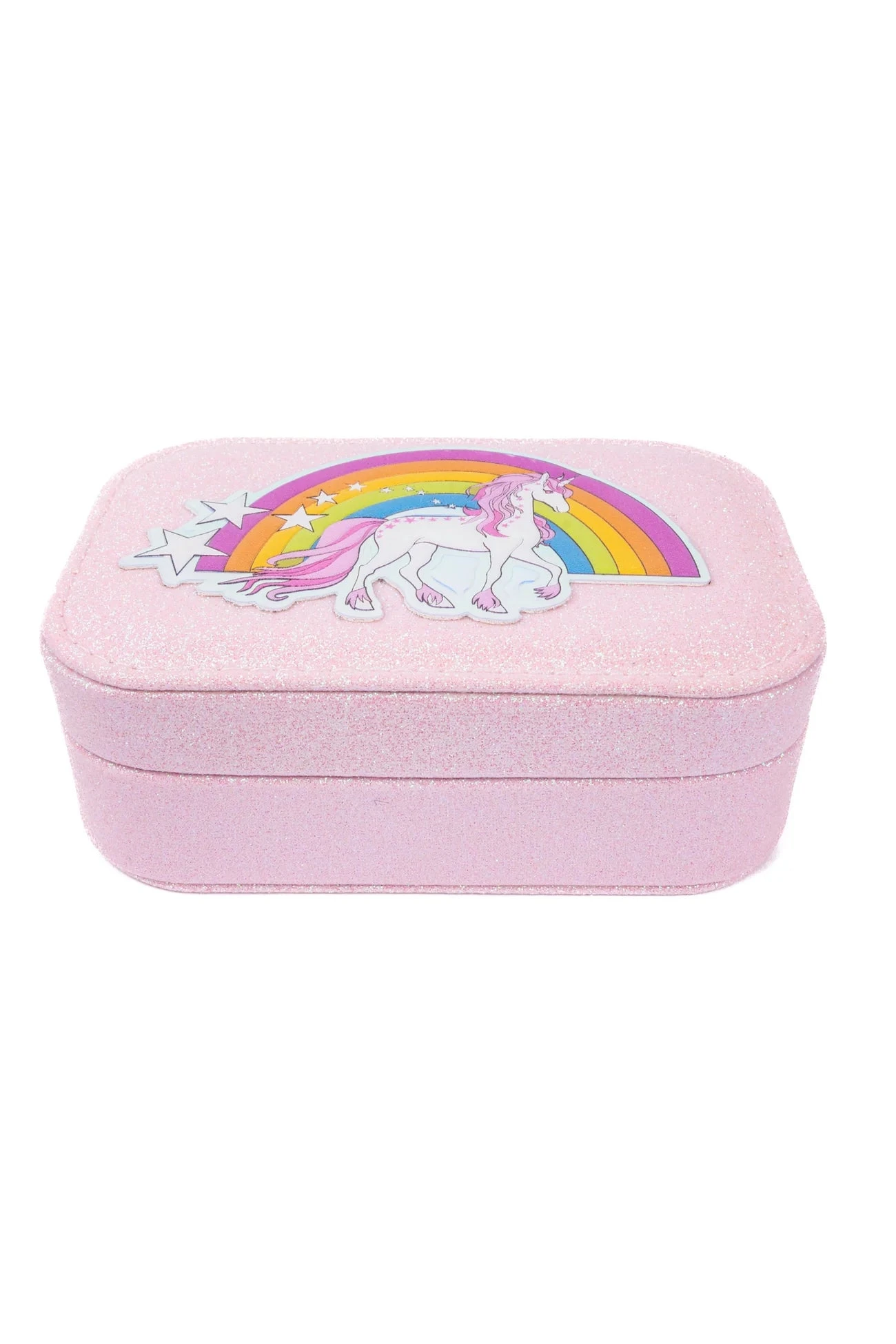 Keep your treasures safe in magical style with our Pretty Precious Unicorn Jewelry Box in pink. Covered in glittery pink sparkle and topped with a whimsical unicorn and rainbow design, this jewelry box is the perfect place to store all your favourite accessories.