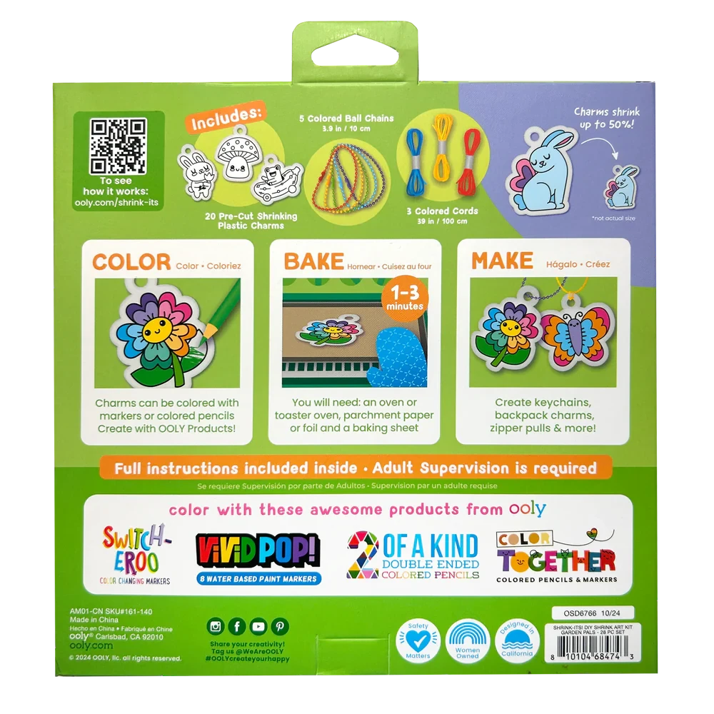 Get ready to color, bake, and shrink your way to charm-making greatness with the Shrink-its! DIY Shrink Art Kit – Garden Pals! Packed with 20 adorable garden-themed designs, this kids craft kit transforms bunnies, bees, flowers, and more into teeny-tiny treasures you can wear or share. Whether your crafty kiddo is personalizing bracelets, keychains, or backpack charms, this kit is buzzing with possibilities.