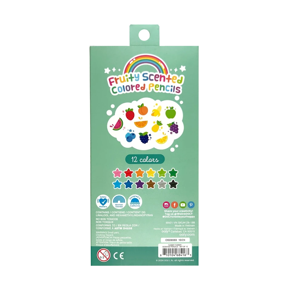 Packed with playful pigments and fruity fun, this set of 12 scented colored pencils sparks sweet, smile-worthy masterpieces with every stroke! Pre-sharpened and ready for action, these pencils are perfect for doodling, coloring, and crafting up a storm.